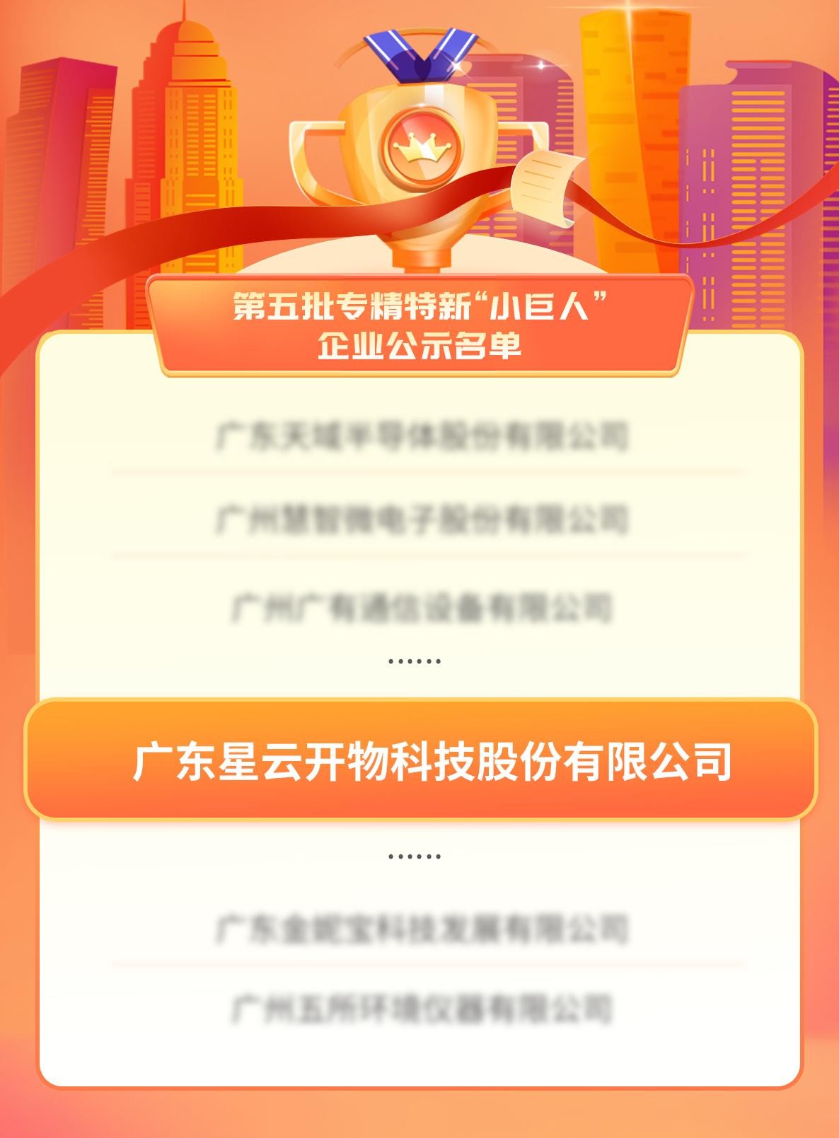? ? 7月14日,國家工信部發(fā)布了《關(guān)于廣東省第五批專精特新“小巨人”企業(yè)和第二批專精特新“小巨人”復(fù)核通過企業(yè)名單的公示》,廣東「星云開物」科技股份有限公司以優(yōu)異的綜合實(shí)力成功入選,榮列2023年國家級(jí)第五批專精特新“小巨人”企業(yè)公示名單。