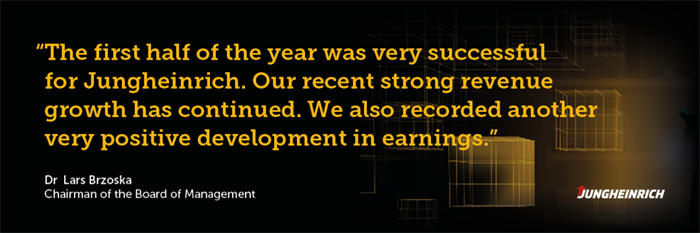 永恒力集團董事會主席Lars Brzoska博士解釋道:“今年上半年對永恒力而言可謂碩果累累。我們延續(xù)了近期營業(yè)收入強勁增長的勢頭。增幅達到了46%,我們在盈利方面再次實現(xiàn)了極為喜人的增長。通過收購Storage Solutions集團,我們在美國貨架系統(tǒng)和倉儲自動化領域贏得了一個重要的增長點。這一點目前已首次體現(xiàn)在集團的合并財務報表內(nèi)。我們繼續(xù)推進實施2025+戰(zhàn)略,并確認本年度的預測數(shù)據(jù)。永恒力已經(jīng)為迎接未來做好了充分的準備?!?/p>