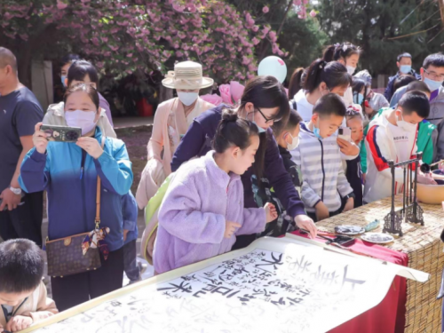 來賓們在賞櫻的同時紛紛錄制有聲明信片“我想對黨說”,體驗各式手作、風箏制作、DIY團扇制作、漢服秀等。“越羅衫袂迎春風,玉刻麒麟腰帶紅?!贝荷ㄏ?#xff0c;飄逸的裙裾、精致的簪花,中華傳統(tǒng)服飾之美與絢爛多姿的國潮風交相輝映,在水墨香中感受漢字書法的魅力所在,在詩詞之美中,領略詩意人生的寫照、家國情懷的寄托,傳承詩詞文化,涵養(yǎng)民族精神。