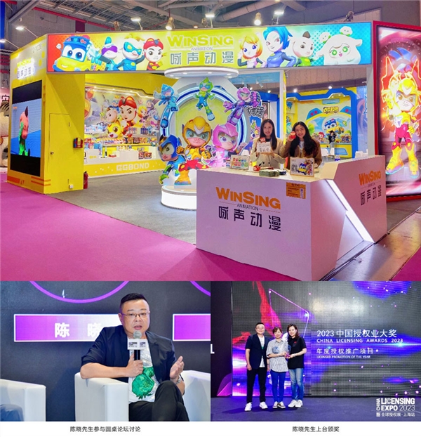 ? 6月28日至30日,詠聲動(dòng)漫攜旗下豬豬俠、百變校巴、詠玩潮·羊圓圓等IP空降2023全球授權(quán)展·上海站(LEC),兩大全新IP《喵能戰(zhàn)士》《反斗聯(lián)萌》首次亮相,吸引眾多企業(yè)現(xiàn)場(chǎng)咨詢。展會(huì)期間,詠聲動(dòng)漫副總裁、國(guó)際授權(quán)業(yè)協(xié)會(huì)大中華區(qū)顧問(wèn)委員陳曉先生作為“2023年授權(quán)業(yè)論壇——圓桌對(duì)話”嘉賓,和多位行業(yè)大咖一起探討消費(fèi)復(fù)蘇的當(dāng)下,授權(quán)商與被授權(quán)商該如何應(yīng)對(duì)急速變換的市場(chǎng)趨勢(shì),現(xiàn)場(chǎng)分享實(shí)戰(zhàn)經(jīng)驗(yàn),共同促進(jìn)行業(yè)發(fā)展;此后,陳曉先生受邀出席 “2023中國(guó)授權(quán)業(yè)大獎(jiǎng)”頒獎(jiǎng)典禮,上臺(tái)為“年度授權(quán)推廣項(xiàng)目”頒發(fā)獎(jiǎng)項(xiàng)。