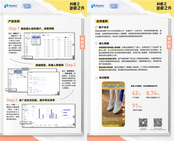 本期的「科普之答案之書」正是以服飾行業(yè)的新品上市營銷節(jié)點(diǎn)為例,品牌結(jié)合“數(shù)據(jù)工廠”中的“標(biāo)簽工廠”“建模預(yù)測(cè)”等能力,通過“一鎖定、二擴(kuò)展、三提效”的經(jīng)營策略,在雙十一大促節(jié)點(diǎn)準(zhǔn)確找到了新品核心用戶和潛在消費(fèi)者,同時(shí)配合品牌動(dòng)態(tài)創(chuàng)意優(yōu)化,保證在大促期間的投放規(guī)模和投放效率,最終實(shí)現(xiàn)了CTR與ROI的大幅度提升。