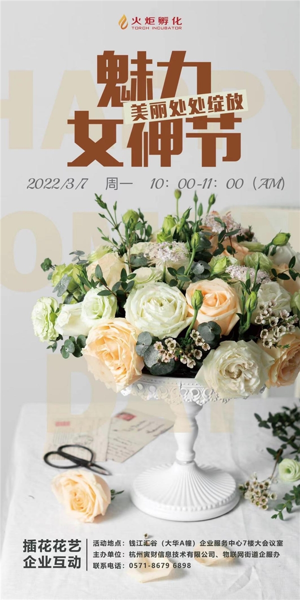 國際三八婦女節(jié)來臨之際,為豐富園區(qū)婦女企業(yè)員工的業(yè)余生活、陶冶情操,3月7日上午,火炬孵化博濟(jì)錢江匯谷運營服務(wù)中心聯(lián)合物聯(lián)網(wǎng)指揮部企服辦在7樓會議室開展了一場“魅力處處綻放美麗處處綻放”三八節(jié)插花花藝園企互動。共計12位員工在此體驗插花藝術(shù),感受插花藝術(shù)帶來的精神享受。