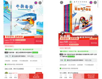 據(jù)了解,自4月20日第三季“多多讀書月”啟動(dòng)以來,科普百科、藝術(shù)繪本、兒童文學(xué)等多種類型的童書是最受歡迎的拼單商品之一,包括DK兒童百科全書系列、世界兒童文學(xué)名著繪本、迪士尼雙語閱讀讀本、《笑貓日記》系列等熱門童書被“寶媽”們?cè)诙鄠€(gè)社交平臺(tái)中分享。