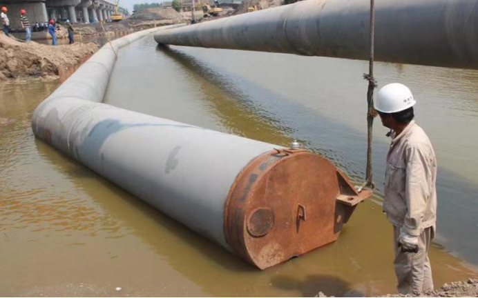 工人們在安裝管道
