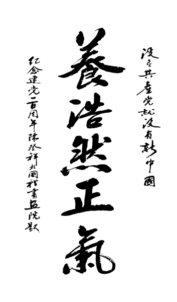 在京期間,陳登祥多次為社會(huì)知名人士書寫宣傳中國傳統(tǒng)國學(xué)的作品,同時(shí),還曾為俄羅斯、烏克蘭、巴基斯坦等外國大使館創(chuàng)作作品,深受各界友好人士的一致好評(píng)。曾有人這樣形容他的字:肥而有骨,活潑靈動(dòng),上下硬帶,左顧右盼,錯(cuò)落起伏,躍然紙上,在流動(dòng)的線條中,方圓、疏密、大小、長(zhǎng)短、粗細(xì)、濃、淡、枯、濕,多變靈活,大氣磅礴如行云流水……