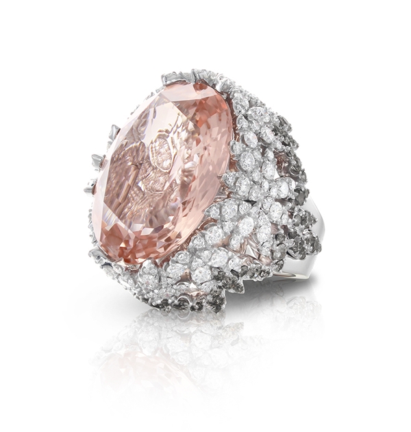 Bon Ton系列是Pasquale Bruni的經(jīng)典標(biāo)志性系列作品,通過“五瓣花朵”的標(biāo)志造型,詮釋代表女性優(yōu)雅、和諧的氣質(zhì)和精致的生活方式。獨(dú)家專利的“Bon Ton切工”,以精致的切割比例和切面的柔軟花瓣為象征,在寶石中心形成圓形花蕊。