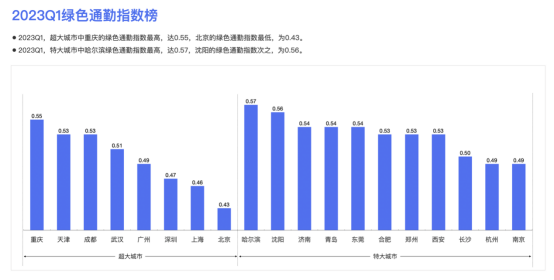 百度地圖聯(lián)合清華大學(xué)數(shù)據(jù)科學(xué)研究院交通大數(shù)據(jù)研究中心、北京交通發(fā)展研究院等發(fā)布的《2023年第一季度中國(guó)城市交通報(bào)告》(以下簡(jiǎn)稱《報(bào)告》)顯示,今年一季度,全國(guó)主要城市交通出行活力復(fù)蘇,百城中近八成城市通勤高峰交通擁堵指數(shù)較2022年同期有所上升;周末游熱度明顯,前十名城市有八個(gè)為一線和新一線城市;通勤幸福感方面,近八成城市的1小時(shí)通勤指數(shù)超過(guò)90%,5公里通勤指數(shù)榜TOP10城市廣東入圍8城;重慶和哈爾濱分別是超大及特大城市綠色通勤指數(shù)榜第一。