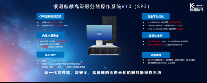 此次峰會(huì),銀河麒麟高級(jí)服務(wù)器操作系統(tǒng)V10(SP3)、銀河麒麟嵌入式操作系統(tǒng)V10、星光麒麟操作系統(tǒng)1.0、銀河麒麟系統(tǒng)升級(jí)管理平臺(tái)四大新品聯(lián)袂發(fā)布,基于安全創(chuàng)新,產(chǎn)品亮點(diǎn)紛呈。