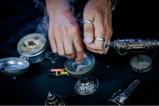 香料撒入爐中,煙霧繚繞,慢慢氤氳出一個(gè)神秘嗅覺(jué)世界,此刻閉上眼睛可以感受來(lái)自香氣的治愈、加持。
