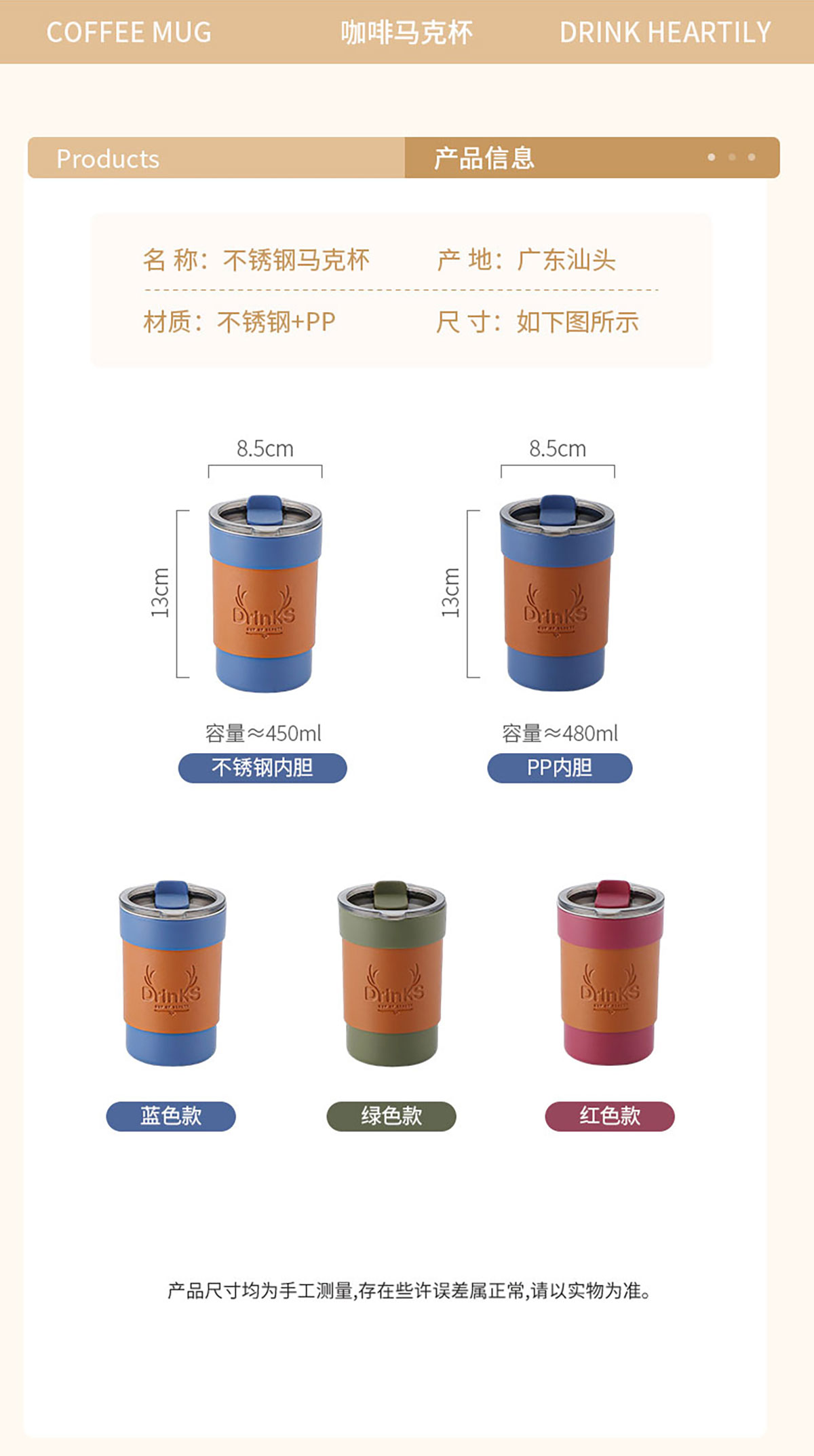 皮套防燙帶蓋咖啡杯(塑料內(nèi)膽)450ml