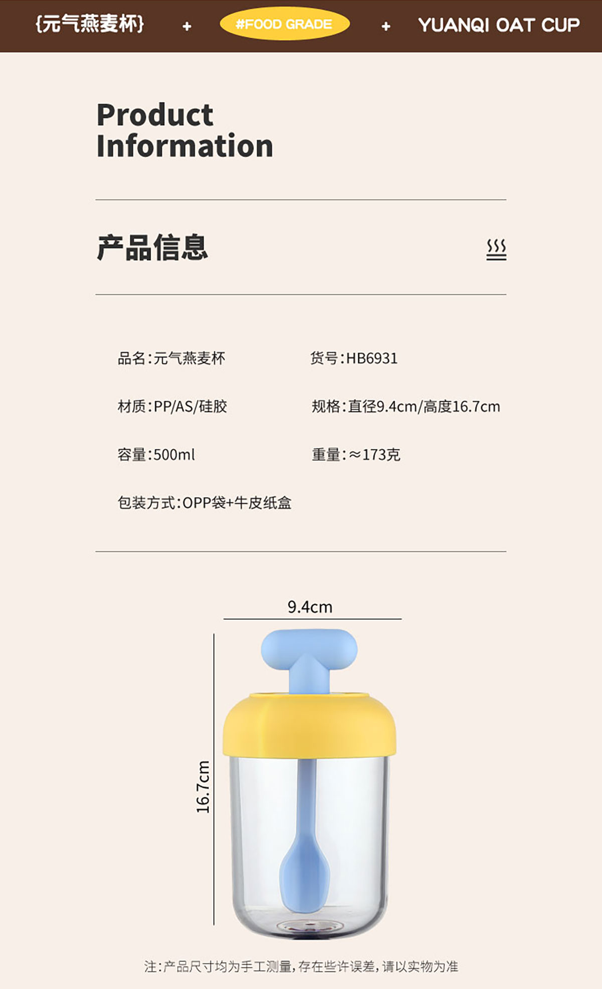 Size: ?94*高度167mm/500ml