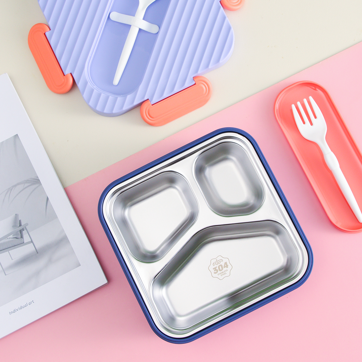 方形分格不銹鋼飯盒