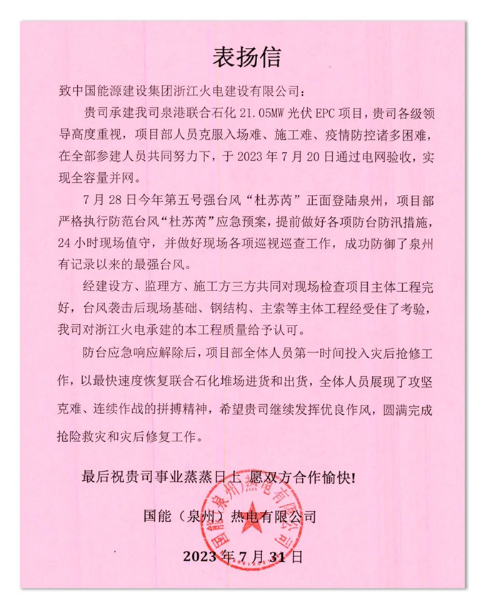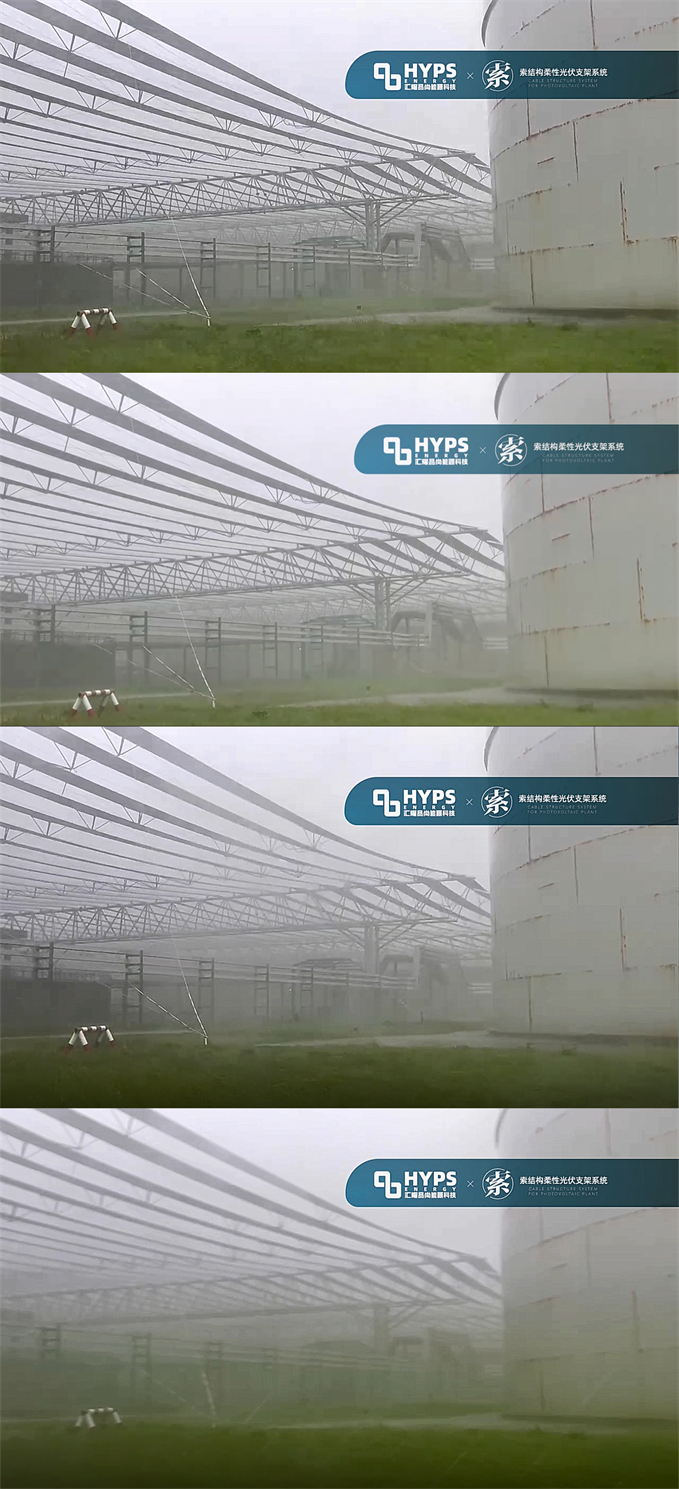 本次遭遇超強臺風(fēng)“杜蘇芮”,是泉港聯(lián)合石化光伏EPC項目從建設(shè)到并網(wǎng)以來經(jīng)歷的最嚴(yán)苛的挑戰(zhàn);也是索結(jié)構(gòu)柔性光伏支架系統(tǒng)在實際建設(shè)項目中遇到的最強自然風(fēng)暴。從某個角度講,索結(jié)構(gòu)柔性光伏支架系統(tǒng)以實際建設(shè)標(biāo)準(zhǔn),在自然環(huán)境下經(jīng)受了一次非模擬狀態(tài)的“風(fēng)洞試驗”。