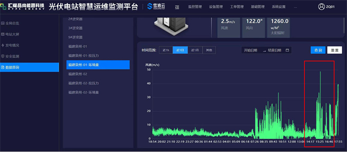 在整個臺風(fēng)過程中,匯耀品尚能源科技光伏電站智慧運維監(jiān)測平臺起到了重要作用,對環(huán)境風(fēng)速變化、系統(tǒng)監(jiān)測狀態(tài),及時提供了實時數(shù)據(jù)。